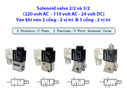 Van khí nén, 2 cổng, 2 vị trí & 3 cổng, 2 vị trí (dùng điện điều khiển)